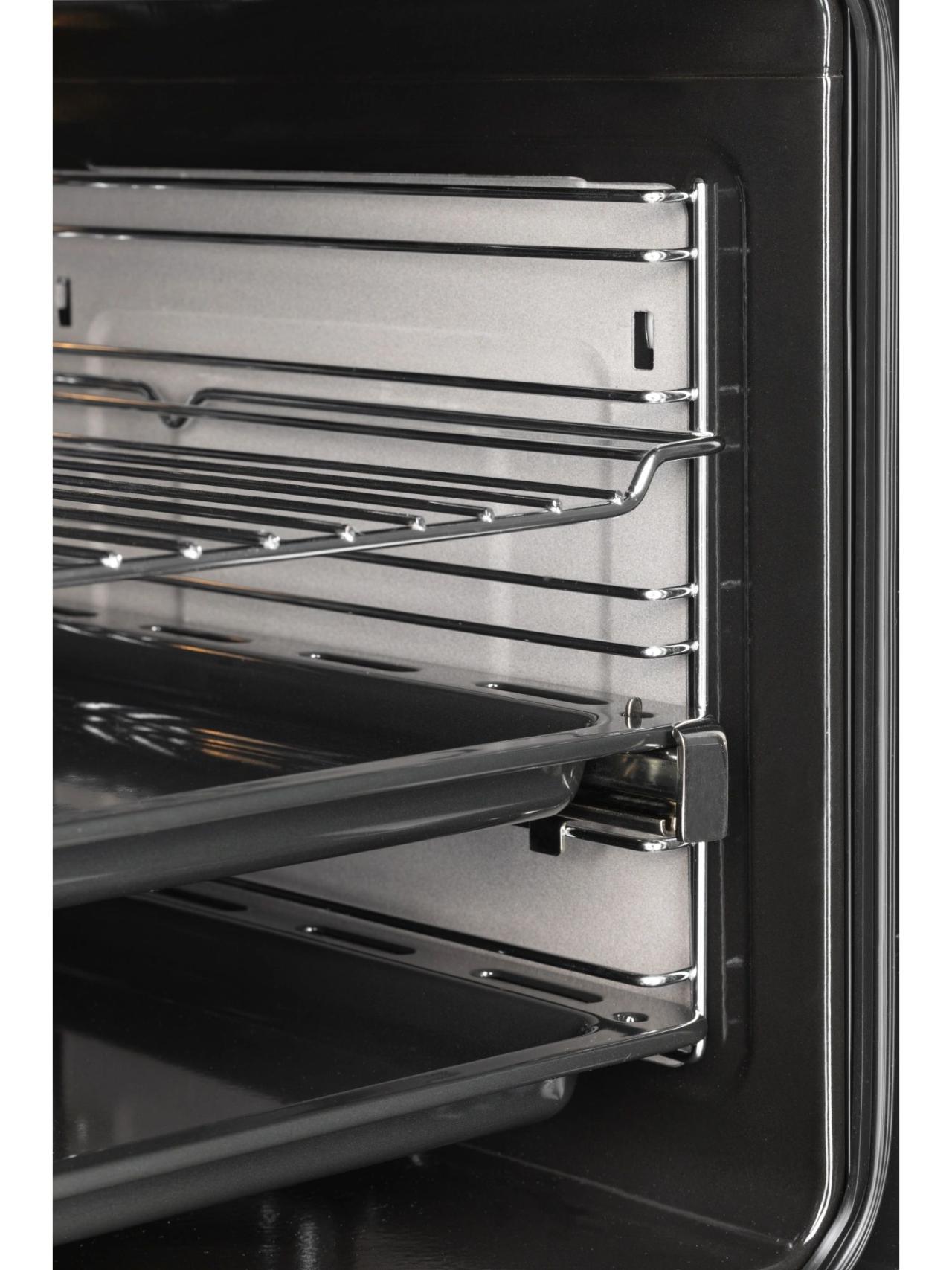 Удобные телескопические направляющие с полным выдвижением для противней помогут контролировать готовность блюд, не придерживая их руками.