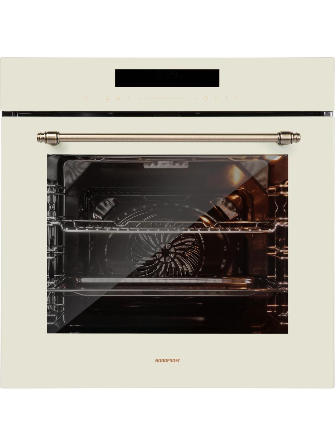 Встраиваемый электрический духовой шкаф NORDFROST HM 65130 YR с общим объемом камеры 74 литра, сенсорным управлением, режимом конвекции и 13 программами нагрева — прекрасное решение для приготовления любимых блюд.