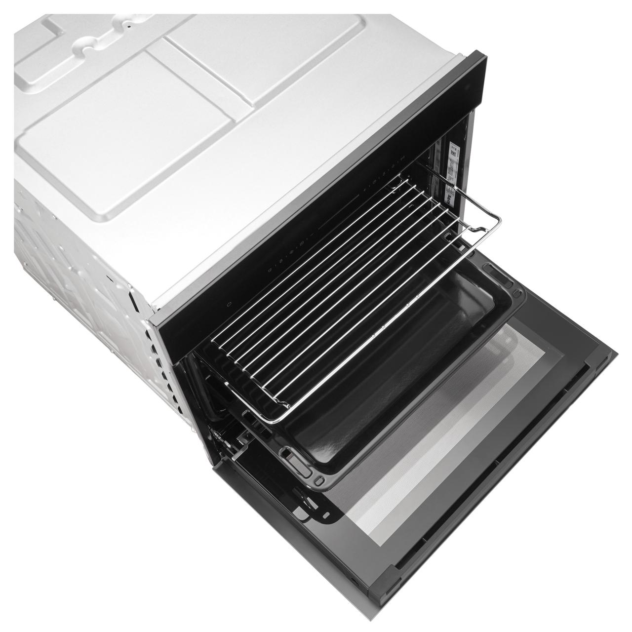 Для безопасности использования предусмотрено автоматическое отключение и блокировка управления. Комплектация включает противень для выпечки и хромированную решетку.
