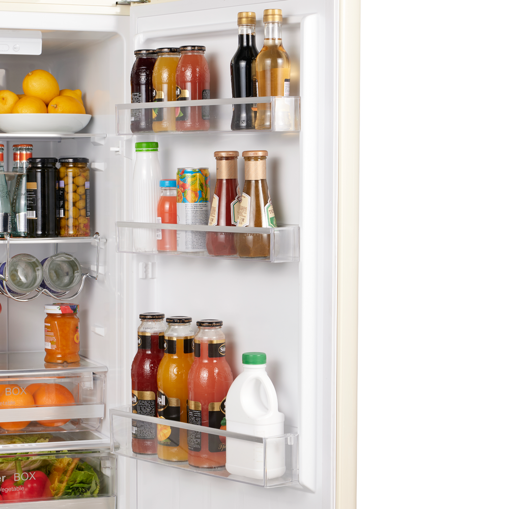Продуманная организация пространства позволяет легко разместить недельные запасы. Внутри — полки, боковые секции и выдвижные ящики, а полезный объём 250 л обеспечивает комфортное хранение без компромиссов по порядку и доступу.
