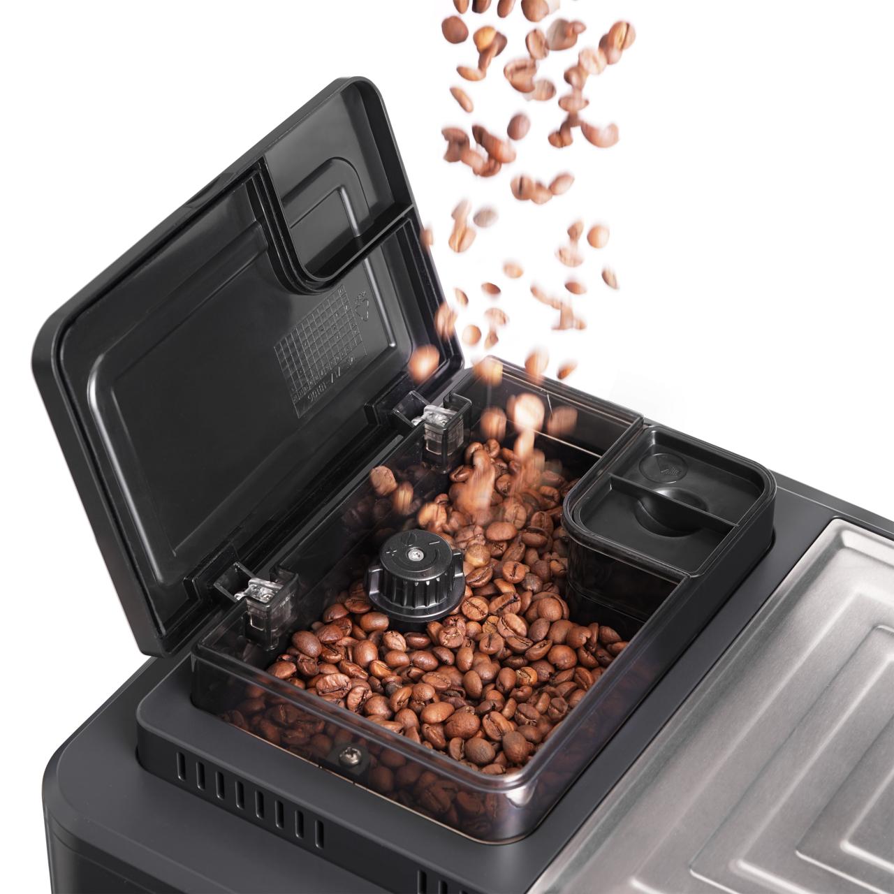 Доступны 5 степеней помола, возможность настройки крепости и температуры напитка, а также 7 автоматических программ. Сенсорный экран обеспечивает простое и понятное управление, а подогрев чашек помогает сохранять правильную температуру и способствует большему раскрытию вкуса и аромата кофе.