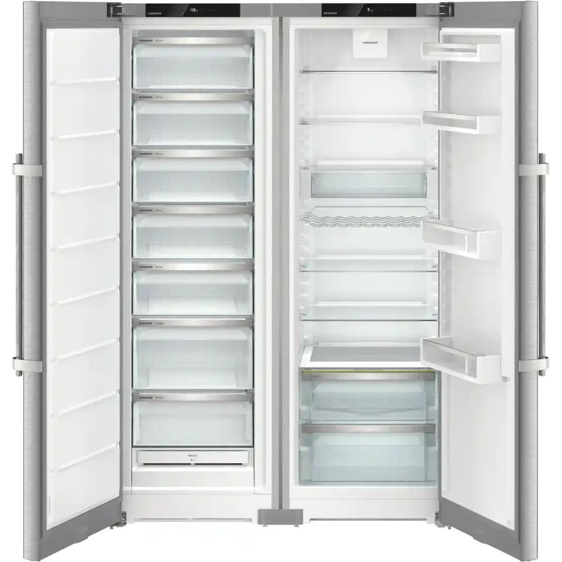 Комбинация LIEBHERR XRFsd 5230-22 001 (SFNsdd 5237-22 001 + SRsdd 5230-22 001) — выбор для тех, кто хочет внушительный Side-by-Side с продуманной организацией пространства и стабильной работой даже при жаре. Циркуляционное охлаждение поддерживает равномерную температуру по всему объёму, а корпус из стали с аккуратным внешним видом впишется в современную кухню.
