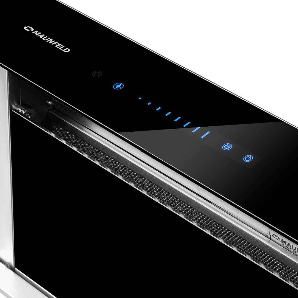 Кухонная вытяжка встраиваемая в столешницу MAUNFELD Prestige 90 чёрный — это эффектное решение для современной кухни, где важны чистый воздух и свободная рабочая поверхность. При включении устройство аккуратно поднимается над столешницей, а после работы исчезает в нише, поддерживая порядок и визуальную лёгкость пространства.