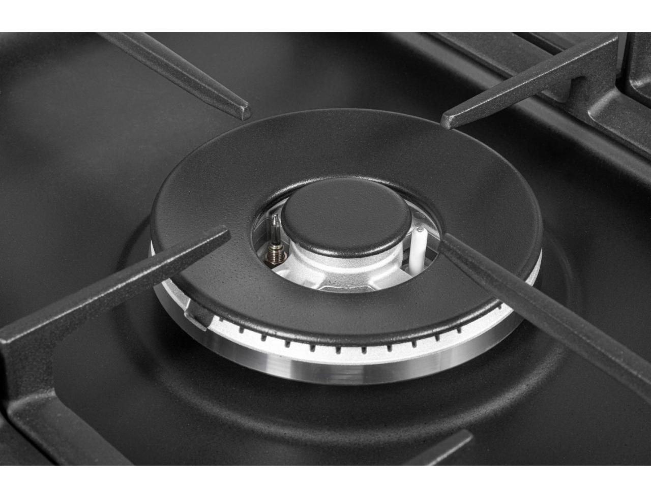 Отдельного внимания заслуживает конфорка WOK с двойным рядом пламени: она быстро прогревает дно и стенки конусной посуды, ускоряет кипячение воды и помогает получить аппетитную корочку на мясе и рыбе. Автоматический розжиг упрощает старт готовки: достаточно утопить и повернуть ручку.