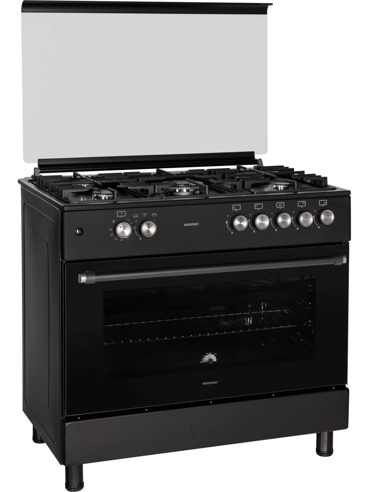 Стильная газовая плита NORDFROST GG 9064 B в черном цвете создана для больших семей и любителей домашней кухни. Рабочая поверхность шириной 90 см дает свободу расстановки посуды, а 5 газовых конфорок позволяют одновременно готовить несколько блюд — от гарниров до основного горячего.
