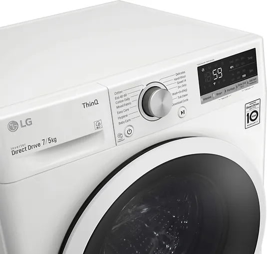 Если вам нужна сушильная стиральная машина с глубиной меньше, чем у обычной сушильной стиральной машины, то вам нужно обратить внимание на этот отличный вариант от LG. Глубина машины составляет всего 47,5 см (без дверцы), но, тем не менее, объем машины для стирки составляет 7 кг, а для сушки - 5 кг. С помощью одной машины, которая выполняет как стирку, так и сушку, вы экономите как пространство, так и деньги. Если вы живете в маленькой квартире или у вас маленькая ванная комната, это отличный вариант для вас.