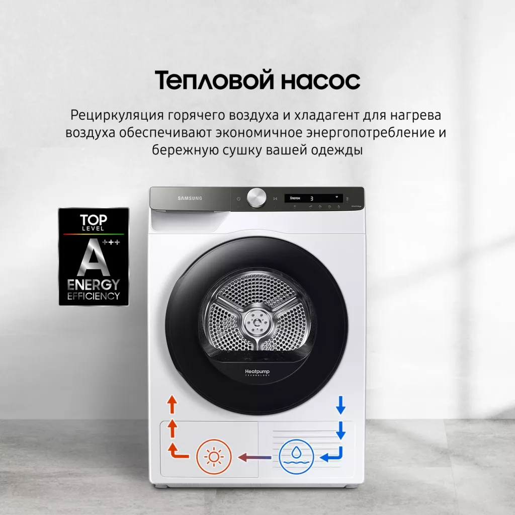 Samsung DV90T5240AW/LP сочетает энергоэффективность, вместительность и бережную сушку. Технология теплового насоса и система OptimalDry обеспечивают оптимальное качество обработки тканей, а широкий выбор программ делает модель универсальной для любых задач.
