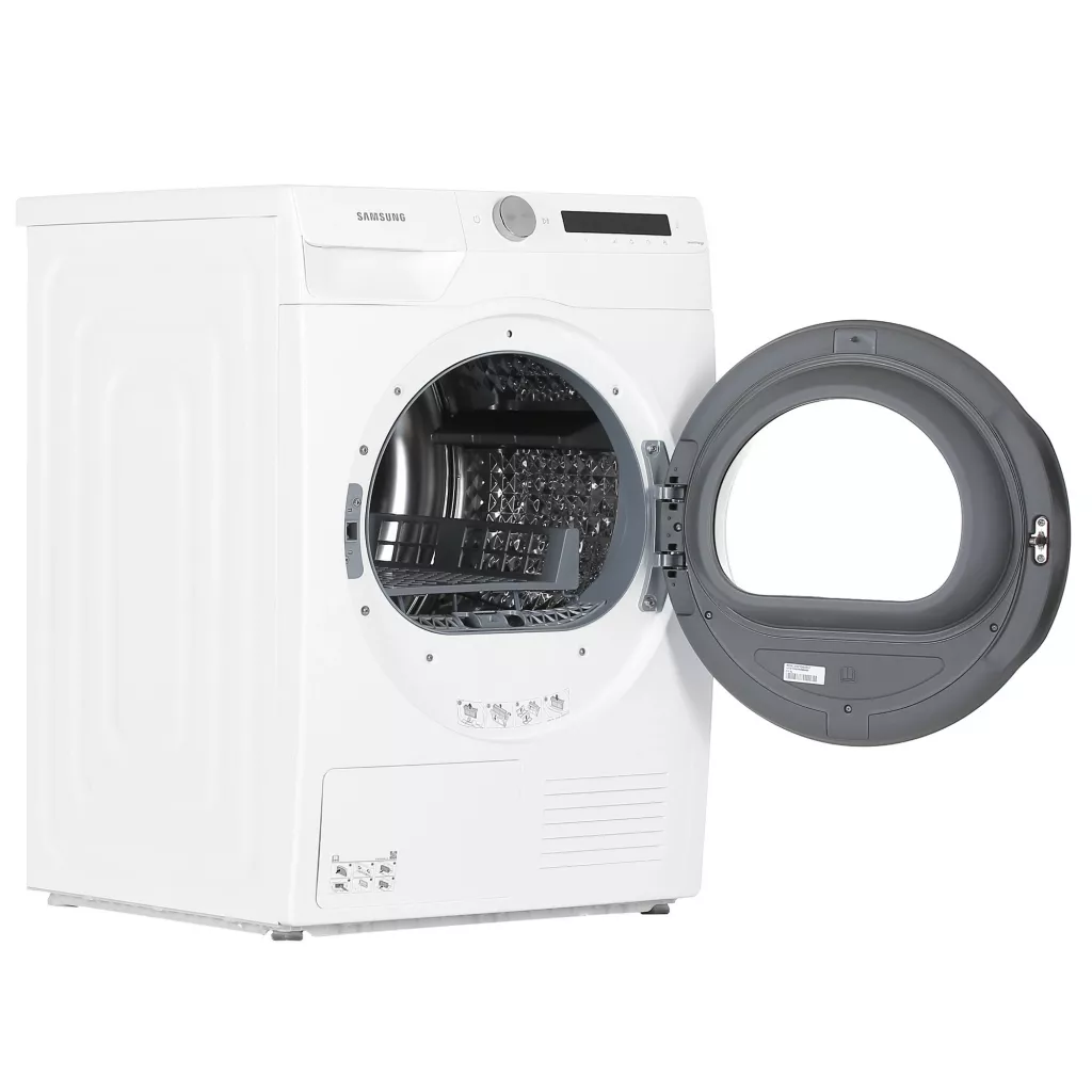 Samsung DV90T5240AW/LP — конденсационная сушильная машина с тепловым насосом, рассчитанная на загрузку до 9 кг белья. Модель отличается высоким классом энергоэффективности (A+++), продуманным набором программ и функциями для защиты тканей. Подходит для семей, ценящих надёжность и экономию электроэнергии.