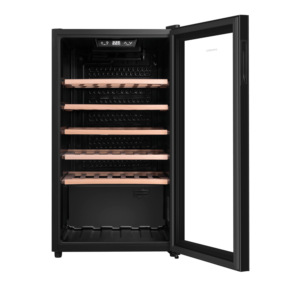 Шкаф вмещает до 56 бутылок и поддерживает температурный диапазон от +5 до +20 °C, что позволяет хранить красные, белые и игристые вина в оптимальных условиях. Такой режим способствует не только сохранности напитков, но и их дозреванию, раскрытию вкуса и аромата.