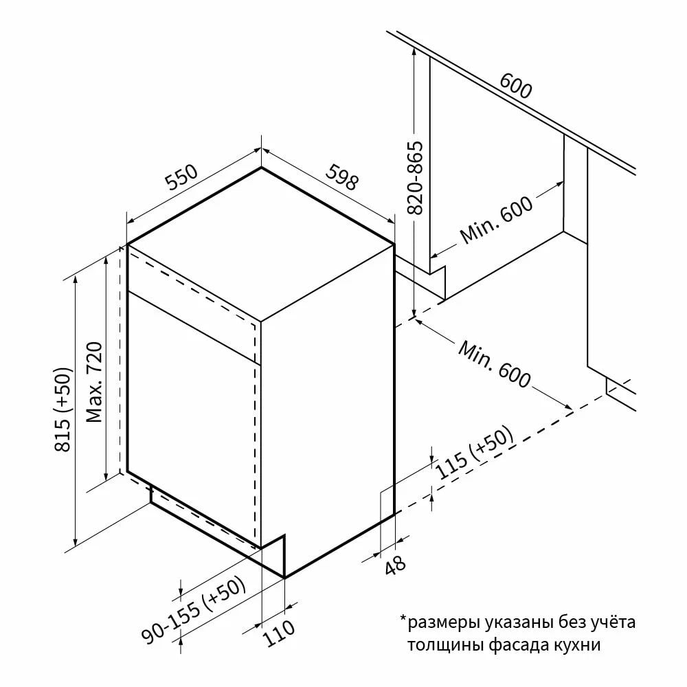 Особенности конструкции: использование средств 3 в 1, регулируемая по высоте корзина для посуды, внутренняя поверхность из нержавеющей стали