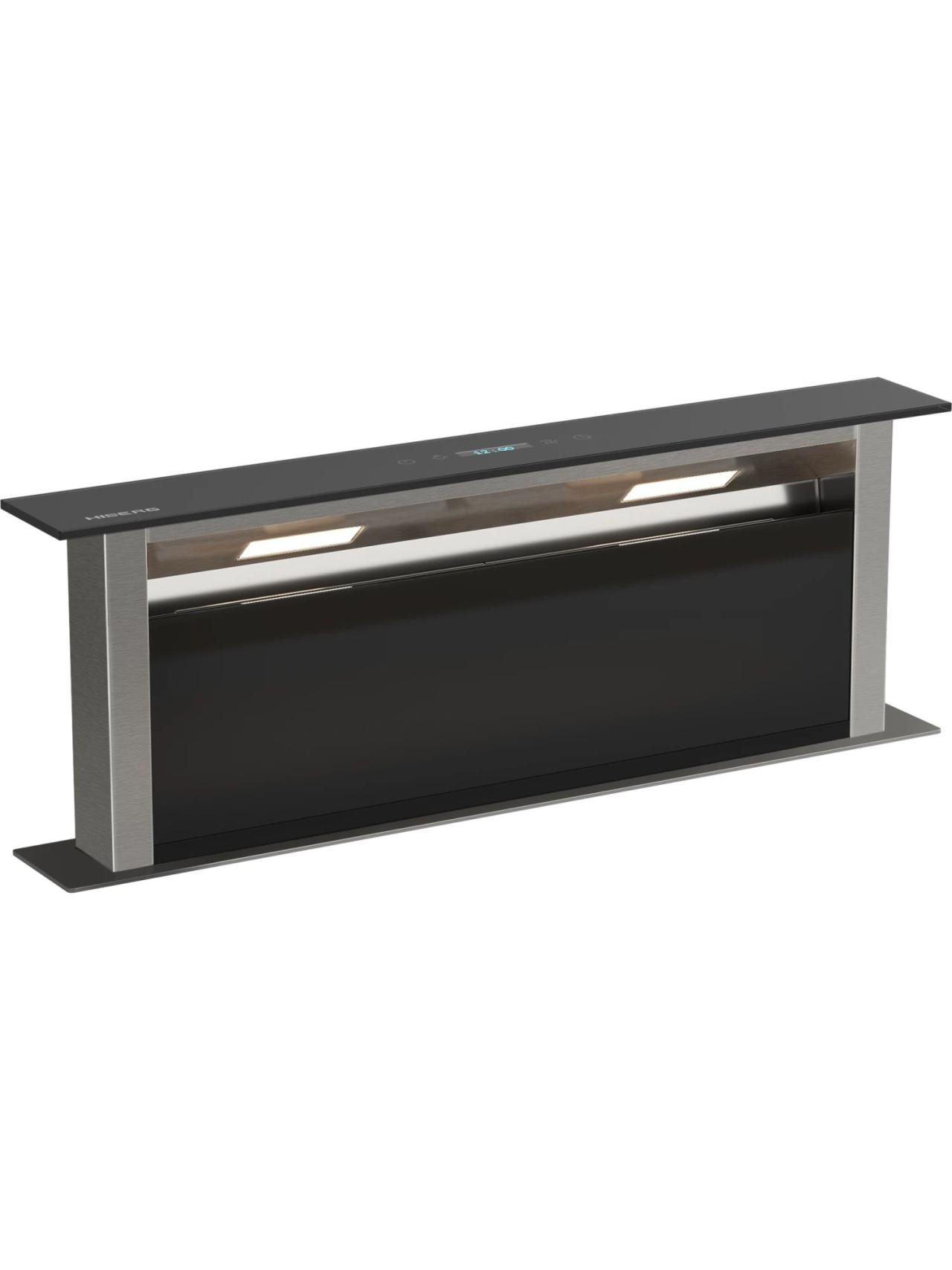 Встраиваемая в столешницу вытяжка HIBERG VTMF 90100 B – это современное инновационное решение для создания комфортных условий на вашей кухне. Вытяжка имеет 9 уровней мощности и работает только в выдвинутом положении, при выключении обратно убирается в стол. В закрытом виде – это элегантная черная стеклянная панель на поверхности стола, которая подходит для больших современных кухонь с островом или кухонного гарнитура без верхних шкафов.