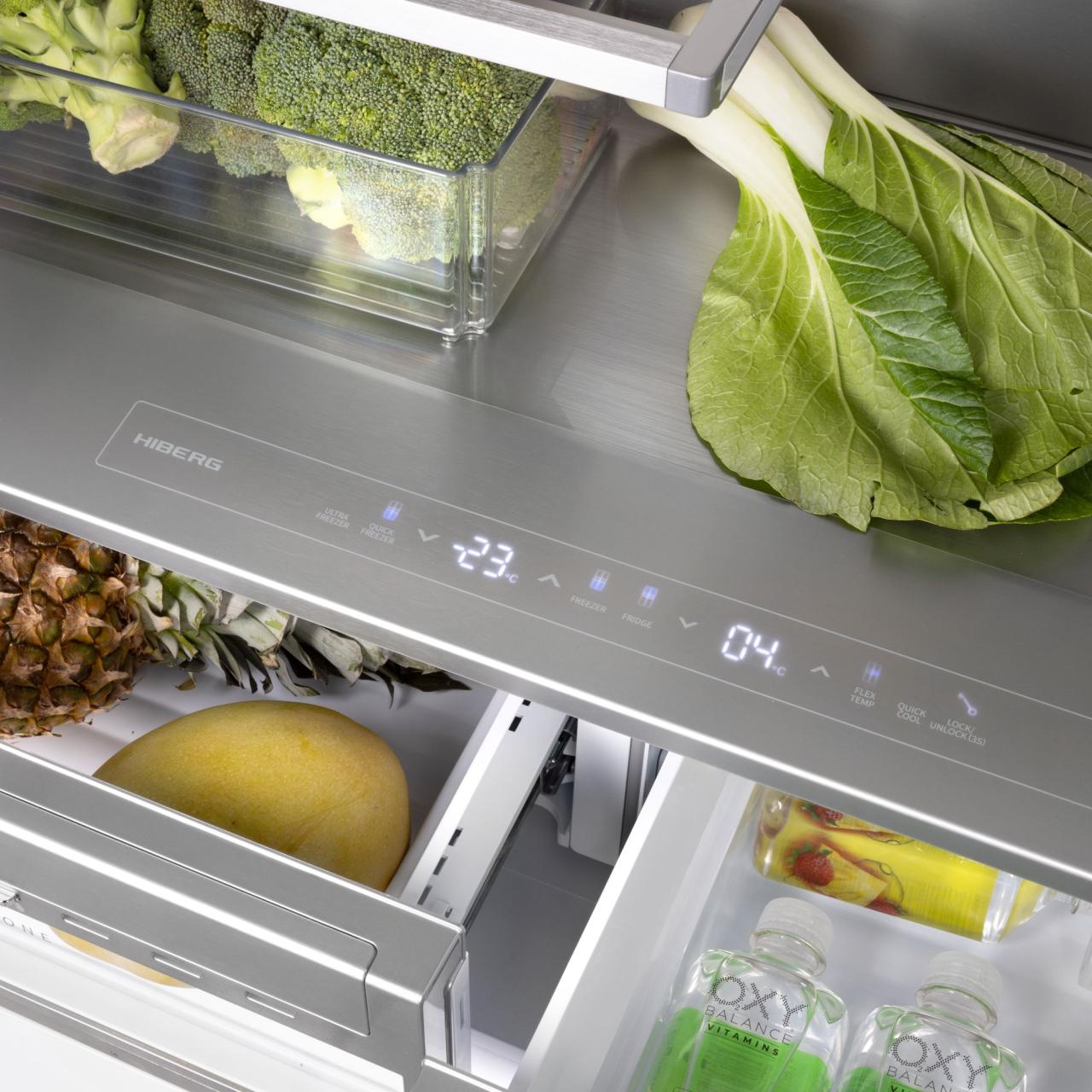 Уникальной особенностью техники является наличие ящика с индивидуальной зоной охлаждения (FLEX ZONE) объемом 12 литров. Настраивая температуру -4 °С, 0 °С или 4 °С, пользователь может использовать его для длительного хранения разного вида продуктов, например, мясных стейков, красной икры, грибов, детского питания. Это отличное решение, если вы не планируете употреблять продукты в ближайшие дни, но и не хотите их замораживать. Кроме того,