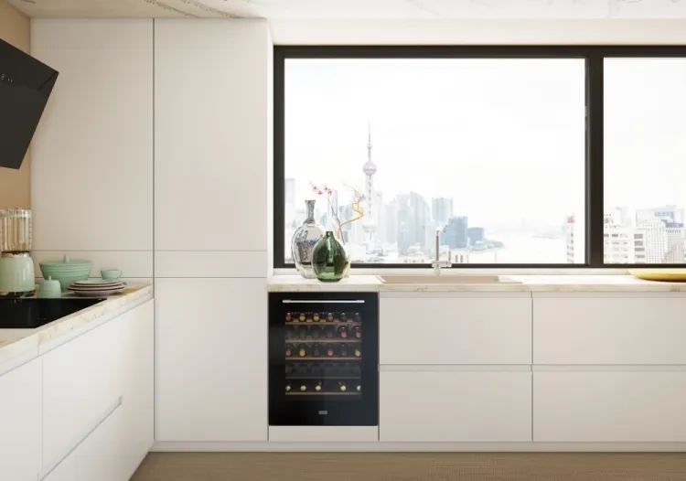 Встраиваемый винный шкаф Franke FMA 36 WCR — выбор для тех, кто хочет эстетично и безопасно хранить коллекцию дома. Модель коллекции Maris аккуратно интегрируется под столешницу и гармонично смотрится на современной кухне. Продуманная конструкция со стеклопакетной дверью защищает от УФ-излучения, а встроенное потолочное LED-освещение деликатно подсвечивает бутылки.