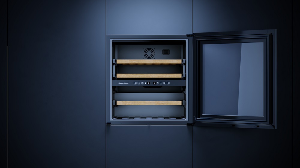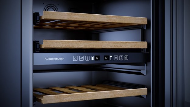 Встраиваемый винный шкаф Kuppersbusch FWK 6862.0 S — это компактное и технологичное решение для хранения и созревания вин, сочетающее высокотехнологичный функционал и элегантный дизайн. Модель выполнена в черном стекле с дверцей из стеклопакета в черной рамке, что придает ей изысканный и современный вид. Открывание дверцы осуществляется нажатием (push-to-open), позволяя обойтись без выступающей ручки. Внутреннее пространство объемом 83 литра разделено на две независимые температурные зоны: верхняя регулируется в диапазоне 5–18 °C, нижняя — 12–20 °C, что идеально подходит для одновременного хранения белых и красных вин при оптимальной для каждого сорта температуре. Компрессорное охлаждение с динамической циркуляцией воздуха и автоматической системой размораживания обеспечивает стабильность и равномерность климата. Шкаф вмещает до 30 бутылок объемом 0.75 л, размещенных на 3 деревянных выдвижных полках. Тонированное стекло с защитой от УФ-излучения предохраняет вина от вредного воздействия света, а резервуар для воды поддерживает оптимальную влажность. Электронное управление с цифровым дисплеем позволяет точно контролировать параметры. Светодиодное освещение деликатно подсвечивает коллекцию без нагрева. Модель оснащена световой и звуковой индикацией неисправностей. Низкий уровень шума 38 дБ и годовое энергопотребление 101 кВт·ч (класс F) делают эксплуатацию комфортной и экономичной. Климатический класс N-ST гарантирует адаптивность к различным условиям. Производство — Германия.